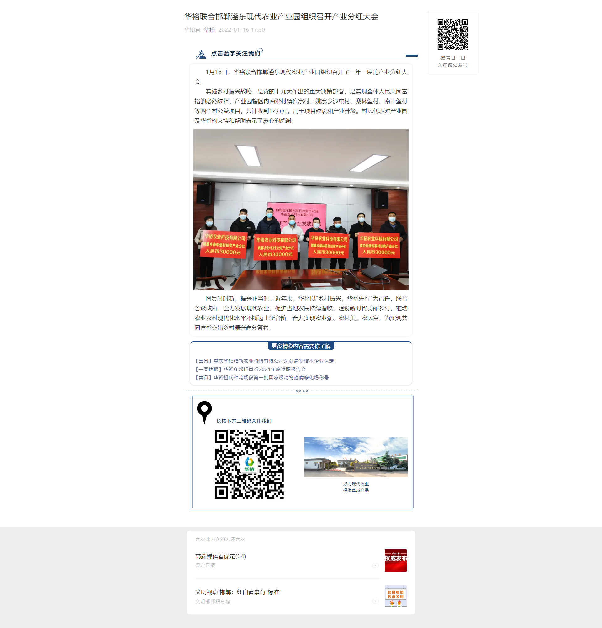 華裕聯(lián)合邯鄲滏東現(xiàn)代農(nóng)業(yè)產(chǎn)業(yè)園組織召開產(chǎn)業(yè)分紅大會